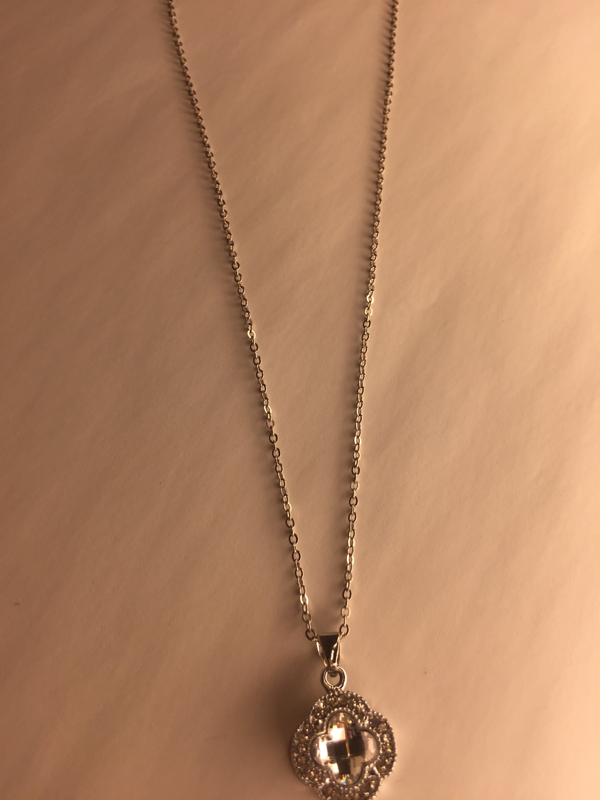 Elegant Clover Pendant Necklace with Crystal Accents
