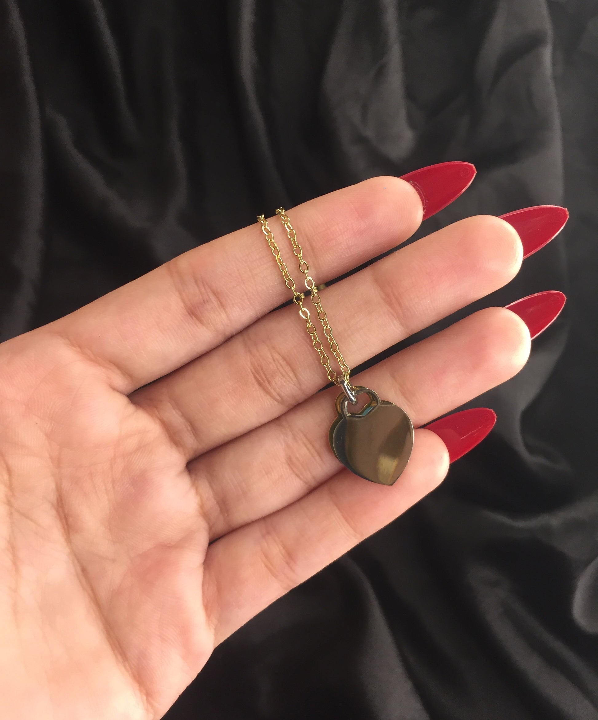 - Add a touch of charm to your look with this beautiful double heart pendant necklace. Featuring a delicate golden chain with two heart charms – one in a sleek metallic finish and the other in a refreshing turquoise shade – this necklace is perfect for everyday wear or special occasions. A stylish piece that symbolizes love, elegance, and individuality.